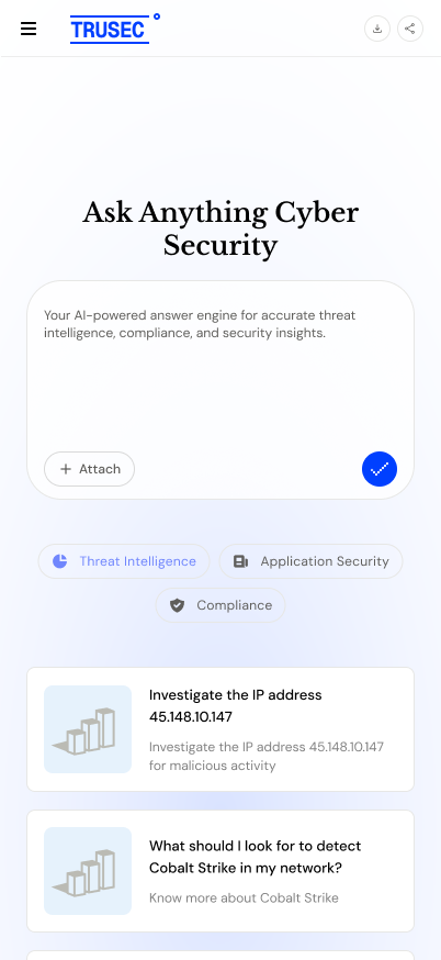Your AI-powered answer engine for accurate threat intelligence, compliance, and security insights.